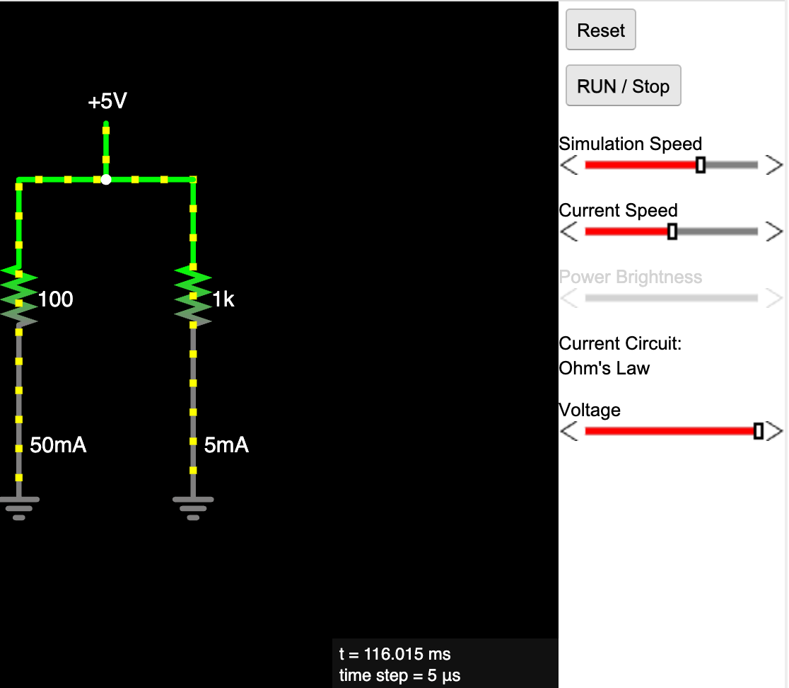 - Falstad Circuits - many of the circuits are define by simple text files that place components are specific coordinates Ohms Law